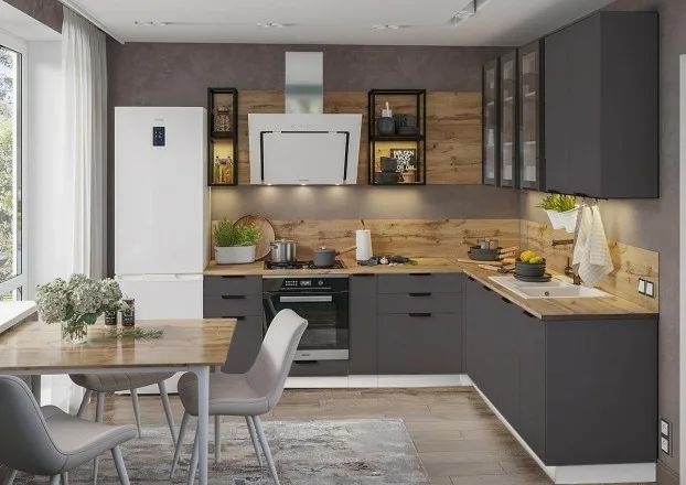 Модульная кухня «Норд» софт Даймонд , орех канадский , смок , есть стандартные фасады. Металлические полки тоже в наличии