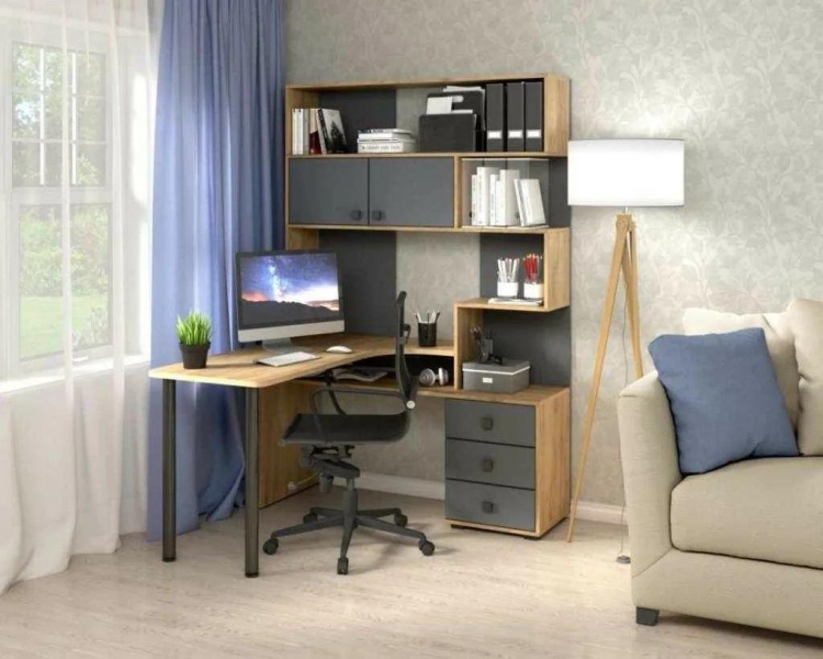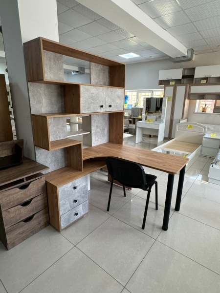Компьютерный стол СК-10 отличается большой рабочей поверхностью, имеет три вместительных ящика, просторные открытые полки над столом для бумаг, книг и всегда нужных мелочей, а также закрытые полки для документов. С таким столом вы приобретете удобное рабочее место, практически миниофис со всем необходимым